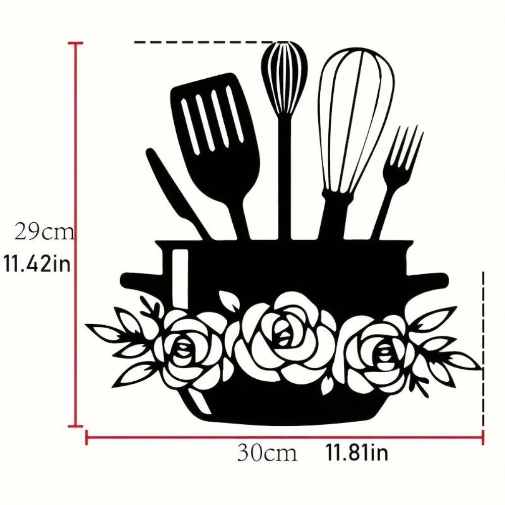 Metal Wall Art Kitchen Decor Black Iron Floral Utensils Durable Easy Install