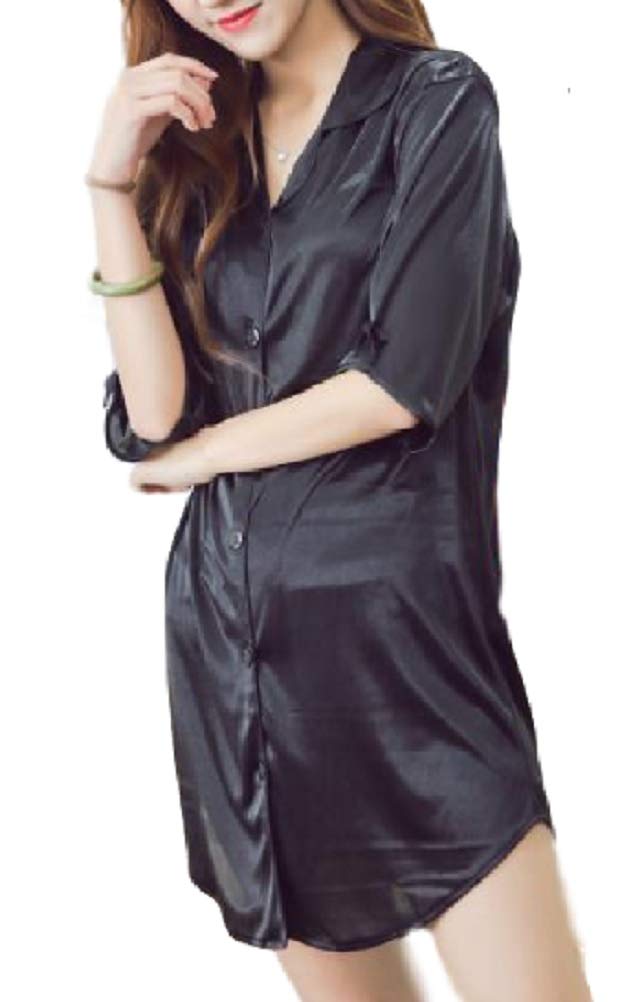 This simple and sexy satin shirt dress is made of smooth satin, making it comfortable to wear and allowing you to sleep soundly. It is thin and comfortable to wear even in the hot summer.