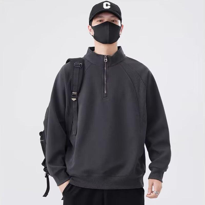 Men's Trendy American Retro Half-Zip Stand Collar Hoodie - Loose Fit, Casual Spring/Autumn Sportswear.