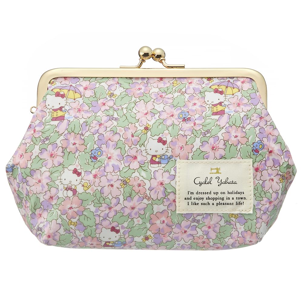 Made in Makeup Pouch with Hello Sanrio and Liberty Floral Design Meadow by Cyalel Yahata Stylish, Japan, Clasp-Closed Kitty, Characters, (Primrose