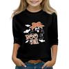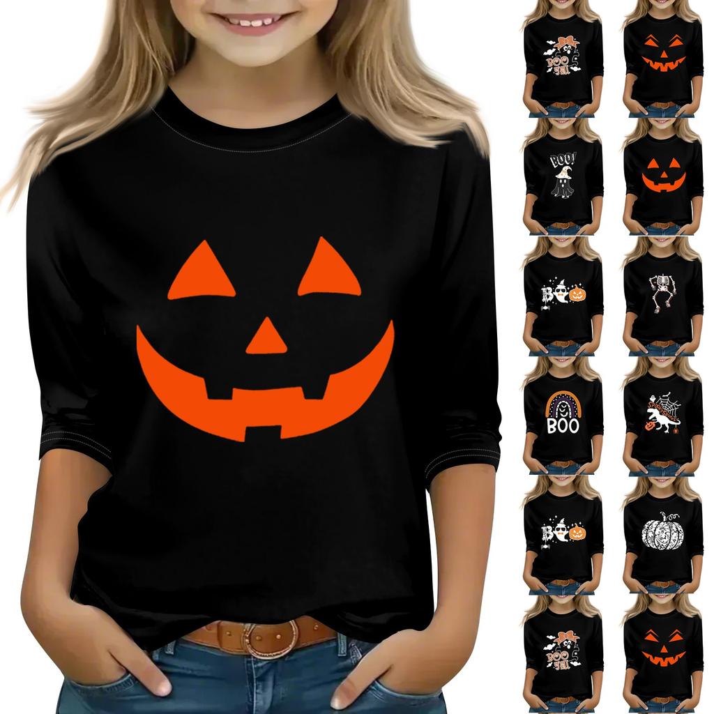 Print Tops For Youth Girls Round Neck 3/4 Sleeves T-Shirts Trendy Tops Outfit Tees