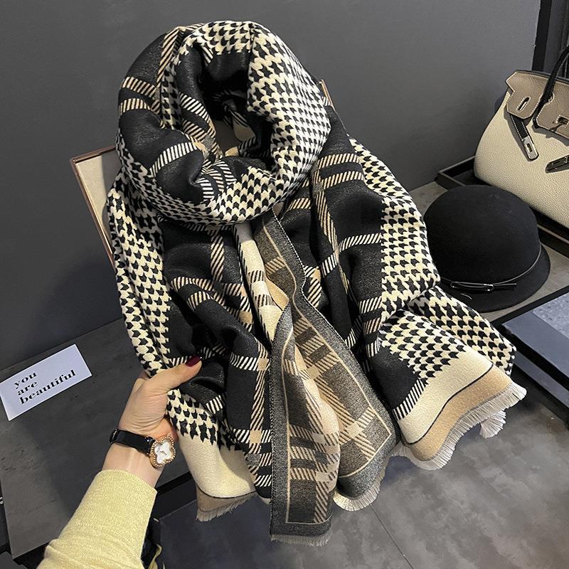 Exquisite Houndstooth Fashion Imitation Cashmere Scarf Winter Versatile Decorative Warm Scarf Double Sided Large Shawl