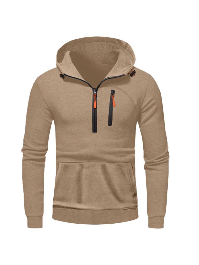 2025 Men's Casual Hooded Pullover Zipper Long Sleeve Sports Sweatshirt for Spring and Autumn
