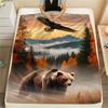 1Pc Brown Bear Print Flannel Blanket, High quality Comfortable for All Seasons, Home Decor, Warmth and Comfort, Perfect for Gifts