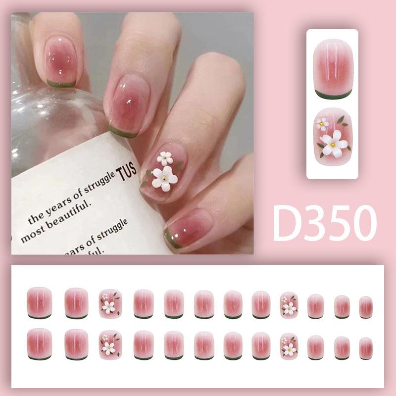Ice-Clear Blush Flower Nail Tips - Gentle, Reusable, Detachable, Finished Student-Friendly Nails