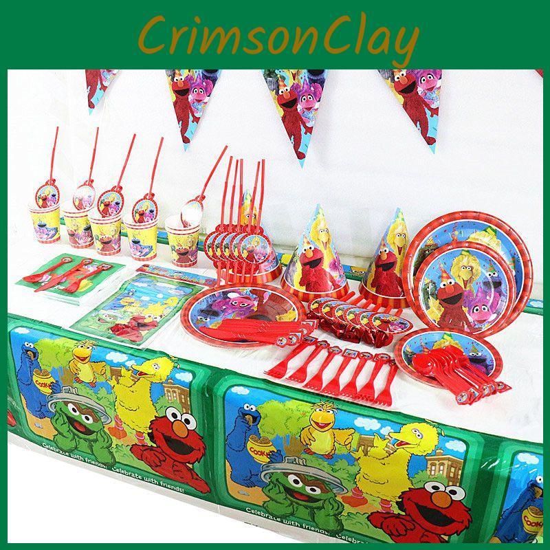Feestartikelen voor een verjaardag met Sesamstraat-thema voor kinderen