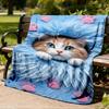 1pc Cat Paws Blue Fur Outdoor Flannel Blanket , Machine Washable Perfect Gift for Birthday , Holiday Travel Accessory , Durable Material