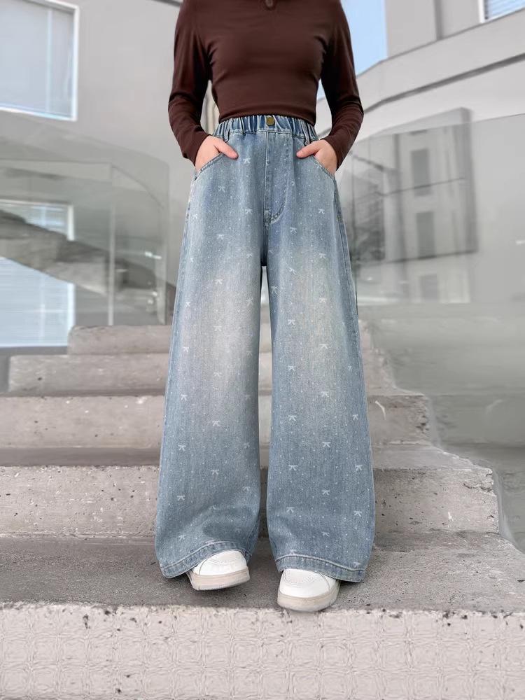 Meisjes Lente 2026 Wijde Pijp Jeans met Strik