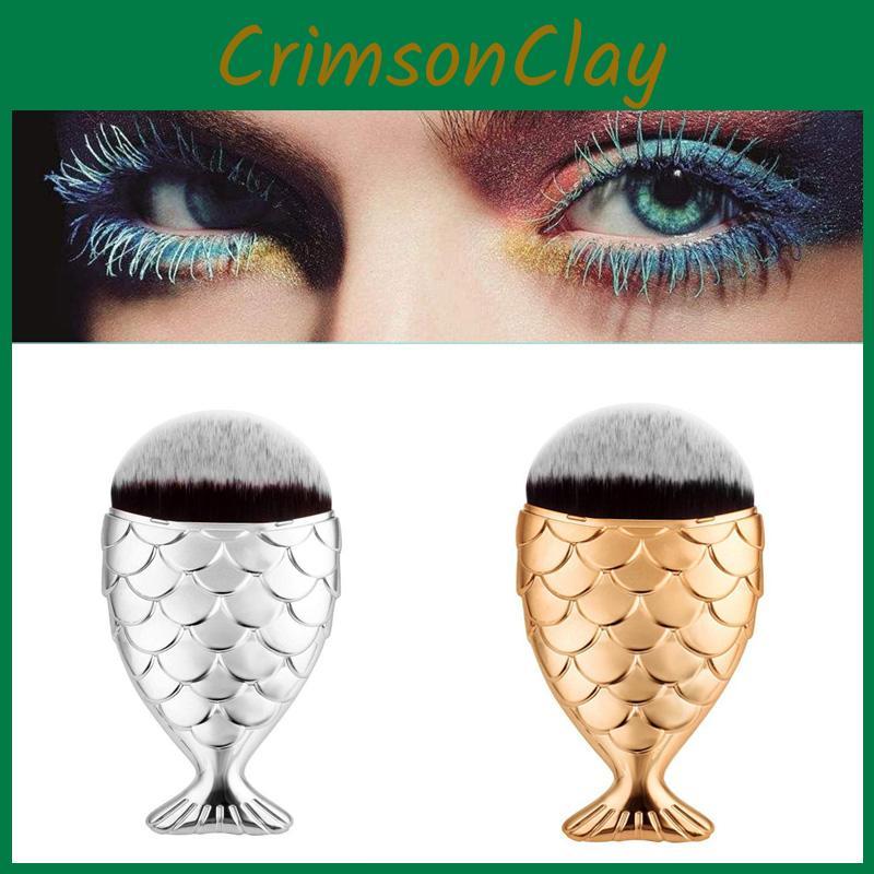 Mermaid Fish Scale Makeup Brush With Fish Tail Foundation Brush Powder Silver
