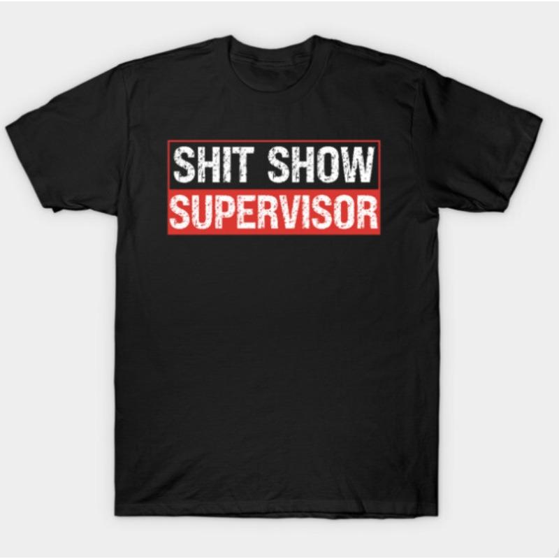 Shit Show Supervisor Tee White Bold Text with Red Border Design Humorous Statement Shirt for Casual Sarcasm Style Fashionable