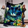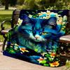 1pc Blue Cat Flowers Print Outdoor Blanket, Lightweight Polyester,