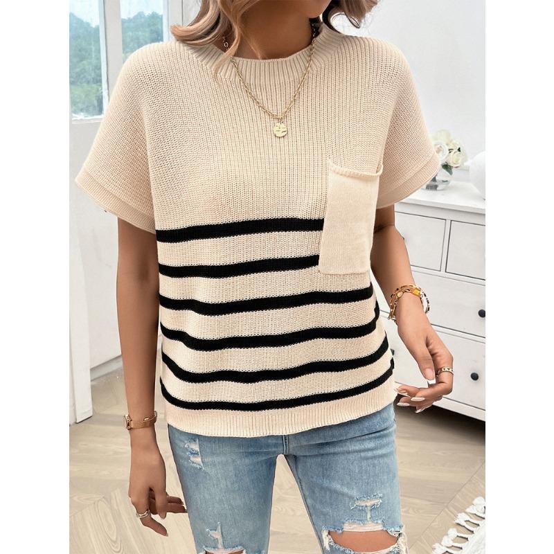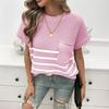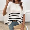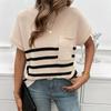 Tops Women's Elegant Round Neck Striped Contrast Short-sleeved Sweater