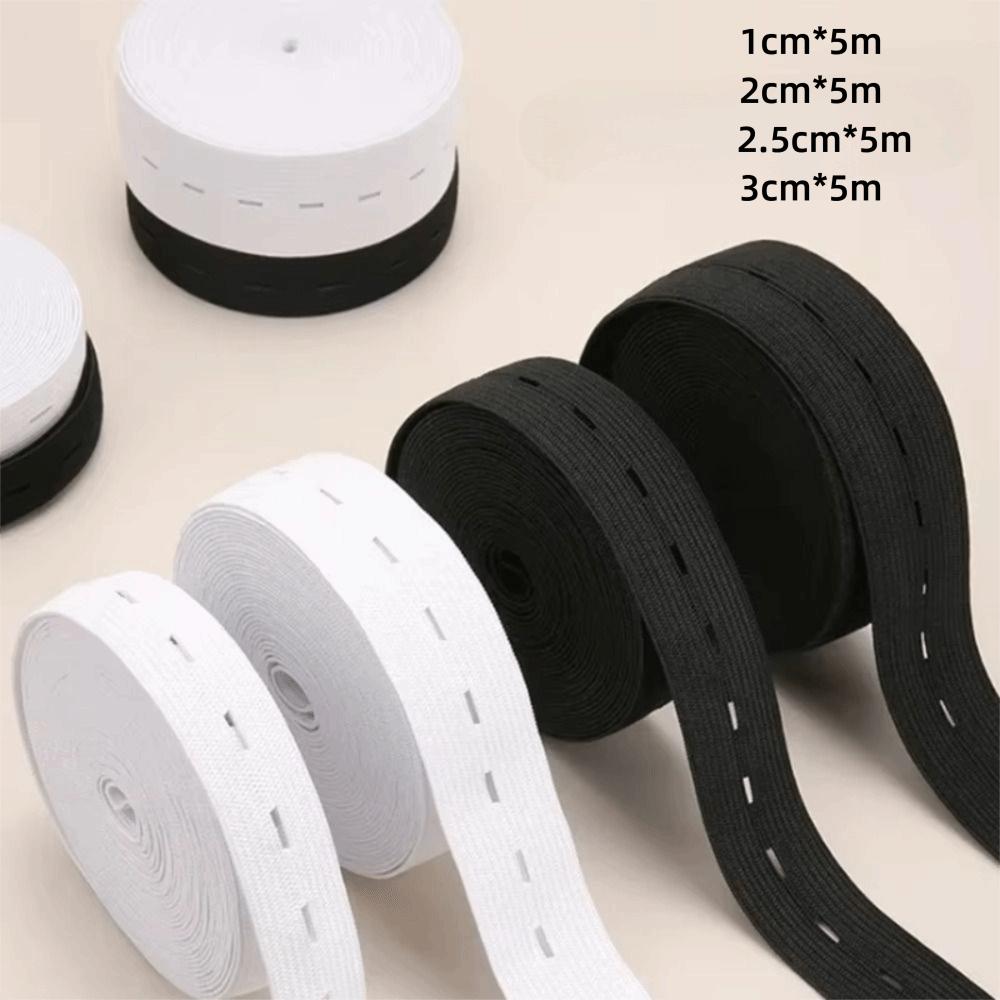 Black White Button Hole Elastic Belt Adjustable Hole Flat Band Elastic Stretch Belt DIY 1.5/2/2.5/3cm Width