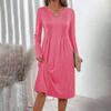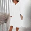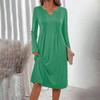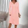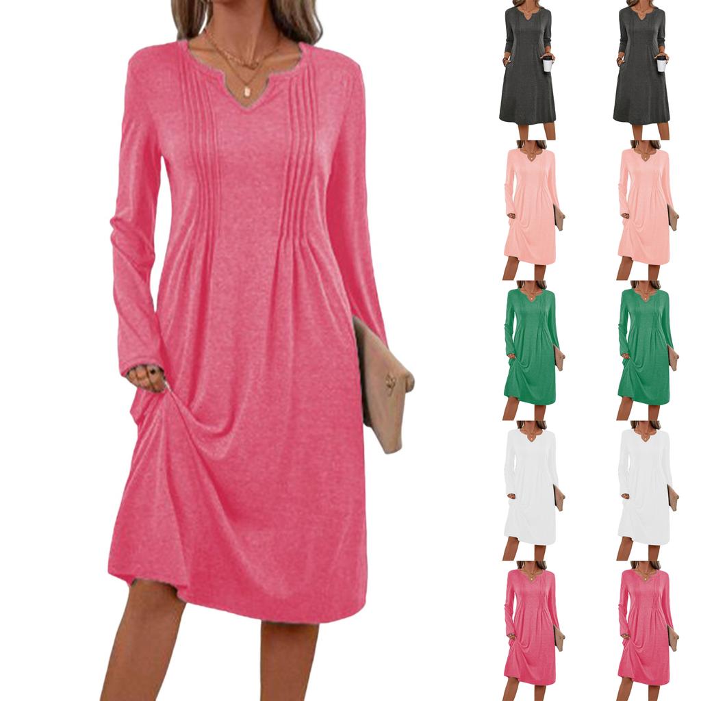 Dames -kleur V-hals Lange Mouwen Losse Geplooide Jurk