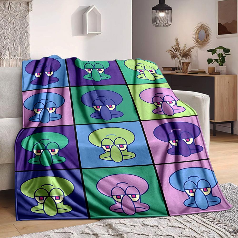 1 stuks SpongeBob SquarePants Flanellen Plaid HD Geprint Lichtgewicht Zacht Warm Deken voor Alle Seizoenen voor Bank, Bed, Reizen, Kamperen Machine Wasbaar