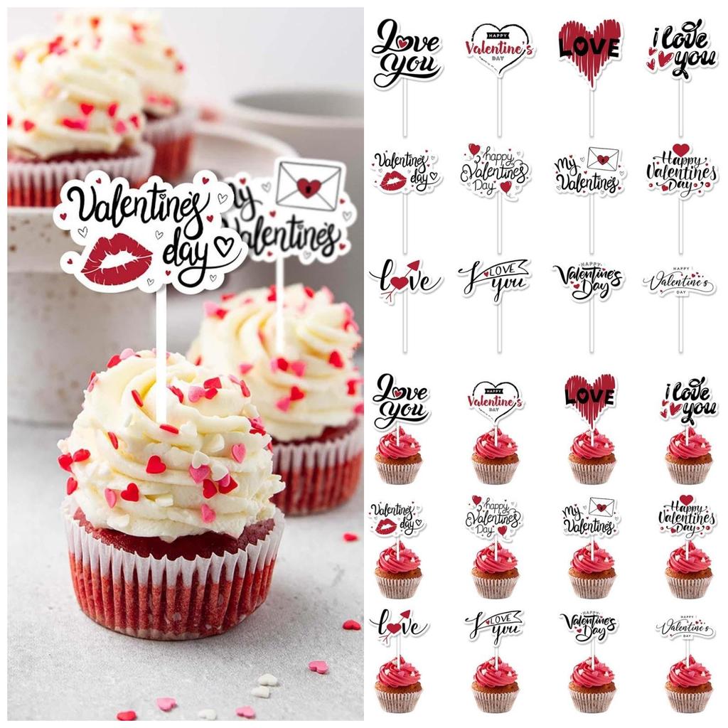 💞Cupcaketoppers met Valentijnsthema - In totaal 12 stijlen, ontworpen met schattige en lieve Valentijnsdag-thema-elementen, hartvormen, letters 'love you', 'I love you', lipkussen, enz., het patroon is duidelijk en opvallend, waardoor een vrolijke sfeer ontstaat voor uw themafeest. Het kan ook gebruikt worden als een foto-rekwisiet om een warme en interessante sfeer te creëren en interessante herinneringen achter te laten.