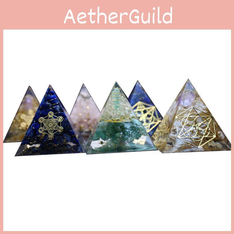 Unique Handmade Orgonite Pyramid With Natural Crystal Macadam For Radiant Home Decor