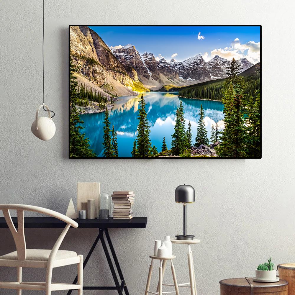 Canvas Poster Modern Art Lake Light Mountain Color Mountain Water Painting Beautiful Scenery Living Room Home Decoration Wall Art Home Decoration