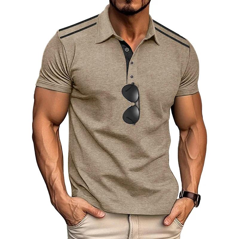 Buttons Retro Color Summer Men's Short-sleeved Lapel Polo Uniform Block Casual Loose Versatile Polo Shirt Clothing