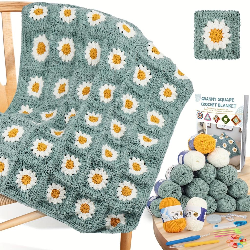 Coopay Crochet Kit for Beginners, Crochet Starter Kit for Blanket, Granny Squares Video Instructions, Easy to Learn Knitting for Beginner