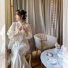 Dames Wit Chinese Stijl Kikkerknopen Oversized Shirt Lange Mouw Los Casual Blouse Retro Minimalistisch Top
