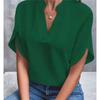 Dames Rode V-hals Split Korte Mouw Blouse Los Chiffon Casual Top