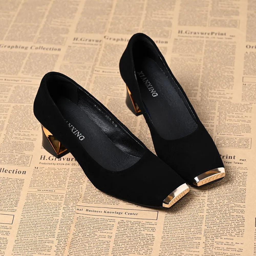 Dames schoenen klassiek rond neus zwart suède hoge kwaliteit vierkante hak schoenen dame koel comfort sexy pump ab533