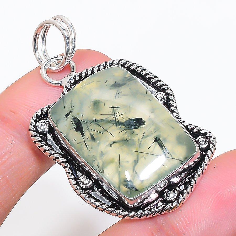 Natural Prehnite Gemstone 925 Sterling Silver Jewelry Pendant 2.05" AP-14077