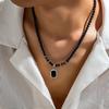 Black Beads with Square Pendant Necklace for Men Trendy Accessories on the Neck Collar 2025 Fashion Jewelry Male Gift Decoration
