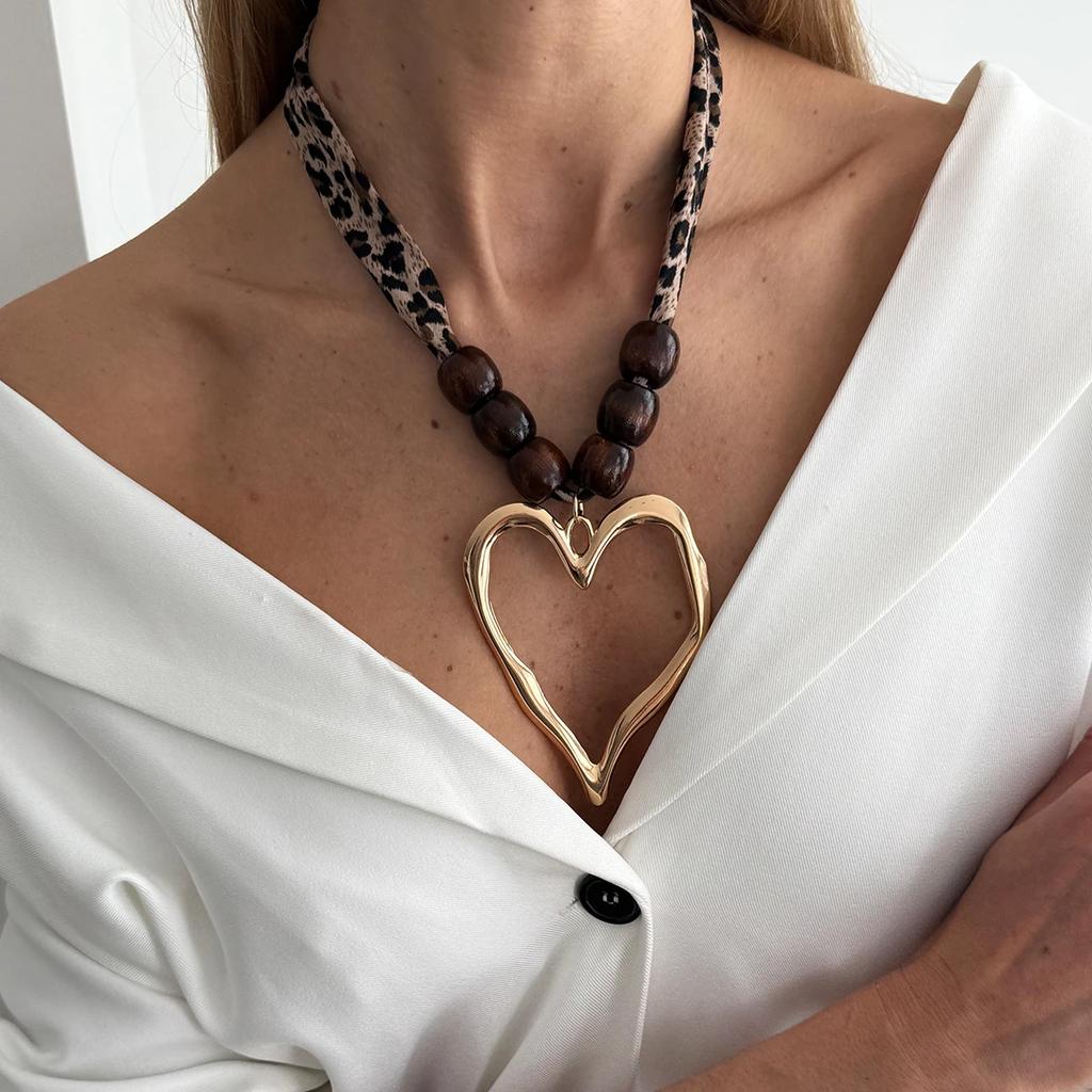 New Exaggeration Big Gold Color Metal Hollow Heart Shape Pendant Necklace Women Trendy Creative Fabric Chain Jewelry Gift