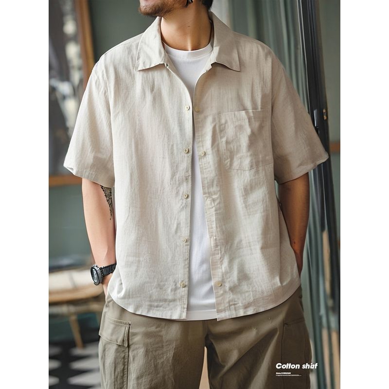 Old Money Style Lightweight Loose Pure Linen Short-Sleeve Shirt for Men, Summer Thin Jacket, Export Men's Casual Shirt