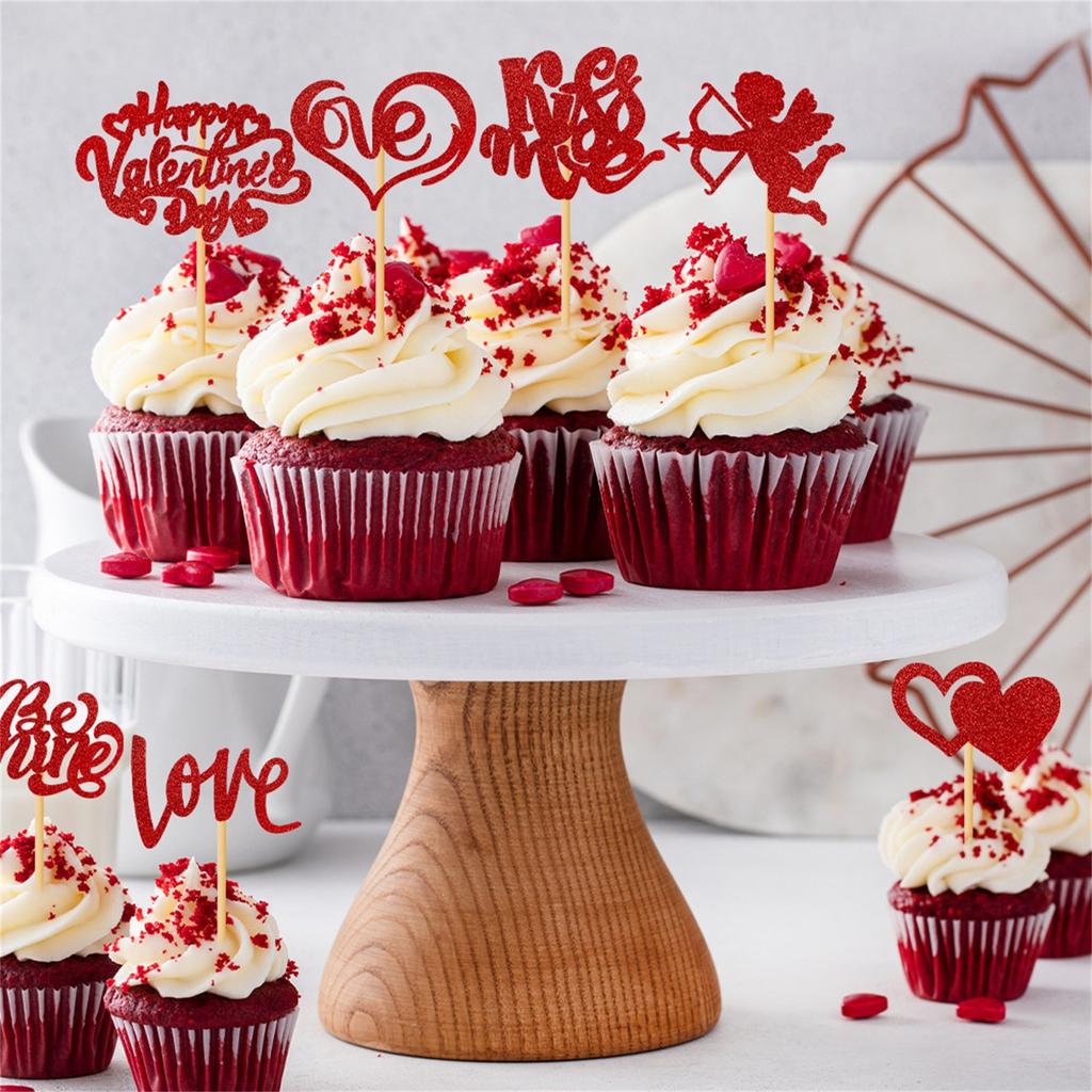 Happy Valentine's Day Cupcake Glitter Love Lips I Love Is My Cupcake Valentine's Day Choice Theme Wedding Party Cake Decoration Red Supplies