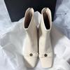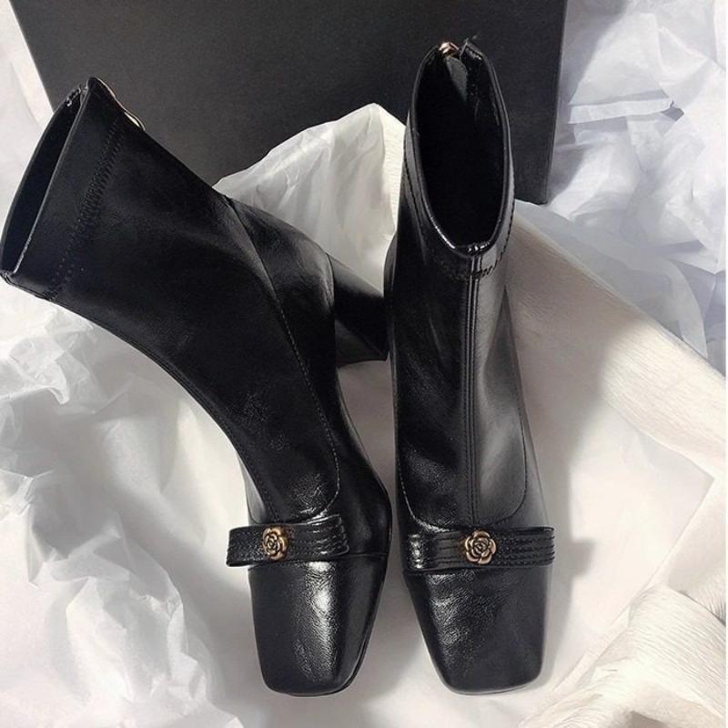 Round-toe Thick-soled Short Boots Made of Soft Leather with Elastic Material, High-heeled Women's Shoes