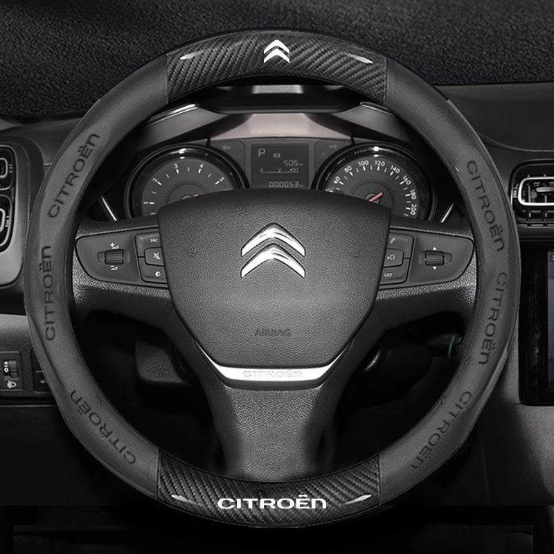 38cm Antislip leder koolstofvezel stuurwielhoes voor Citroen C1 C2 C3 C4 C5 C6 C4L Berlingo Picasso Aircross Sega Elysee
