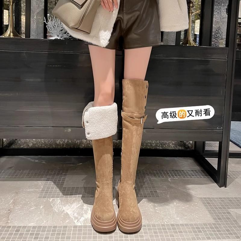 Knee over boots 2025 retro western boots women's autumn and winter velvet high boots snow boots knight boots