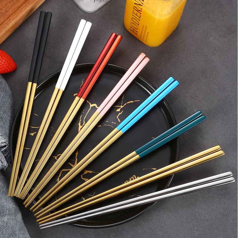Square 23cm 304 stainless steel chopsticks, anti slip and heat-resistant hollow household chopsticks, sushi chopsticks