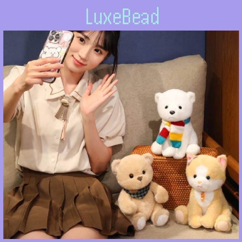 Measuring at a perfect height of 23 centimeters, these plush toys are the ideal size for little hands to hold and carry wherever they go. Made from high-quality short plush material and filled with soft PP cotton, they provide a comforting touch that soothes and brings warmth.Our collection features an array of enchanting color options, including adorable gray kitties, playful light brown kitties, and charming polar bears in blue and white or red and yellow scarves.