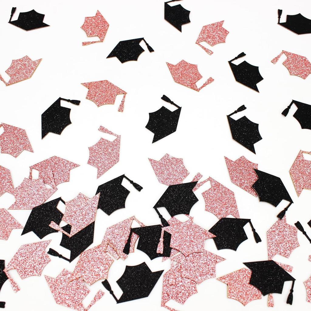 200PC Black Rose Gold Grad Cap Graduation Confetti for Table Glitter Graduation Hat Table Scatter for Class of 2026 Grad Party Decorations