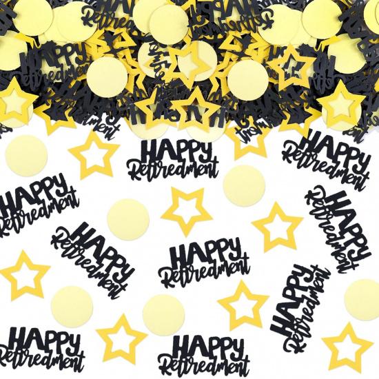 100PCS Happy Retirement Star Table Decorations - Black Gold Confetti