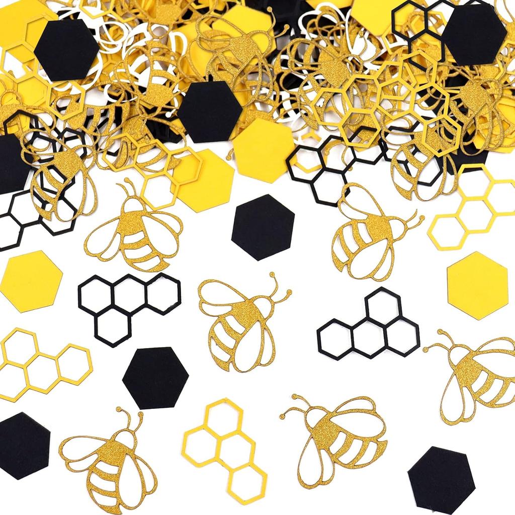 100PCS Bee Confetti Bee Dot Stripes Yellow Black Circle Honeycomb Hexagon Confetti for Baby Shower Themed Bee Birthday Table Decoration Supplies
