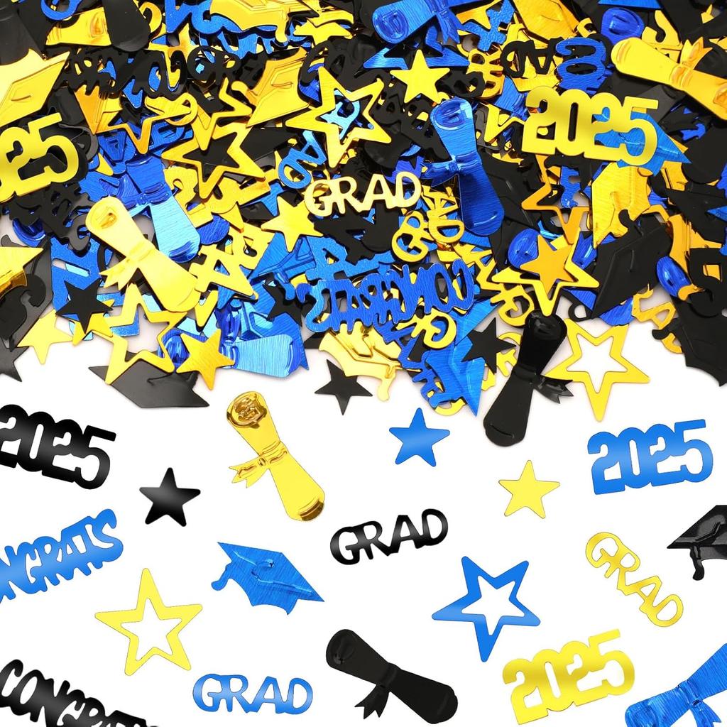 MARFOREVER Graduation Party Confetti, Class of 2025 Black Gold Blue Party Decorations Table Confetti for 2025 Graduation Theme Events Supplies