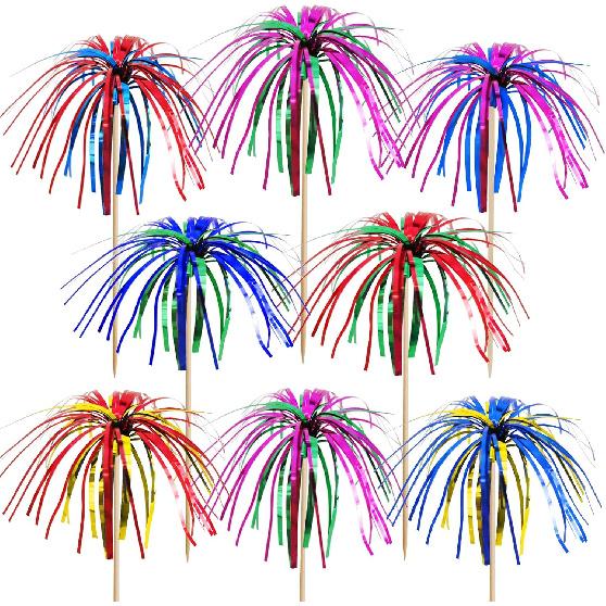 BLUE TOP Cocktail Picks Wood Foil Firework Cake Picks 9 Inch 100 PCS,Cupcake Toppers for Cakes Decoration, Children's Day, Party Suppliers,July