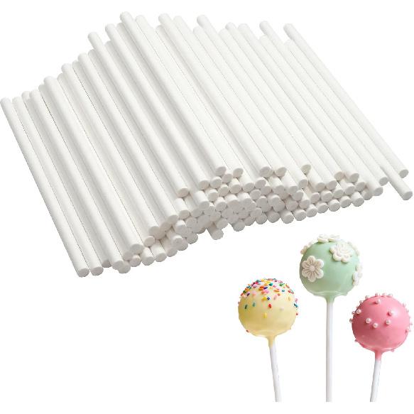 100Pcs White Lollipop Sticks, 4-inch Paper Cake Pop Sticks, 4mm Thick Sucker Sticks for Hard Candy, Chocolate,Cookies, Dessert