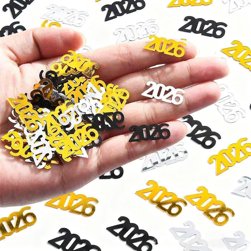 2026 New Years Confetti,Cheer to 2026 Scatter,New Year Eve Party Confetti Black Gold Silver Party Supplies for Winter Xmas Holiday Party Decorations