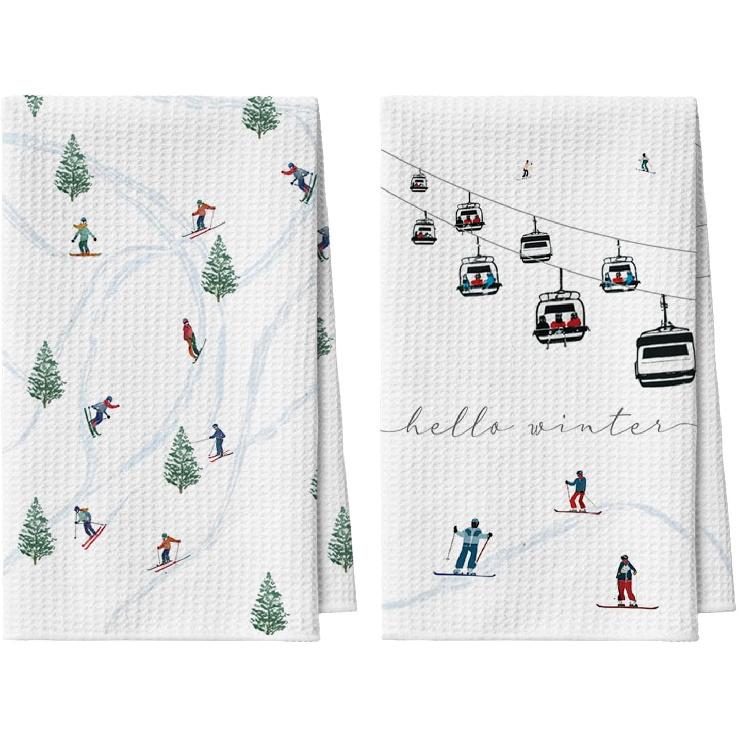 Artoid Mode Xmas Trees Cable Car Ski Winter Bar Kitchen Towels, 12x24 Inch Quick Dry Microfiber Cloth Dish Towels for Kitchen Drying Set of 2