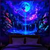 Heopapin Blacklight Tapestry Fantasy Moon Lightning Tapestries UV Reactive Tapestry Magic Waterfall Forest Landscape Tapestries Wall Hanging for
