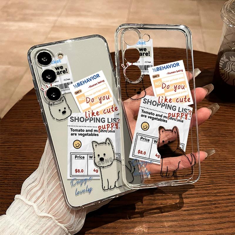 Cute Puppy Sticker Collage TPU Phone Case For IPhone 15 14 13 12 11 Pro Max & Samsung Galaxy S24 S23 S22 Ultra, Clear Shockproof Protective Cover