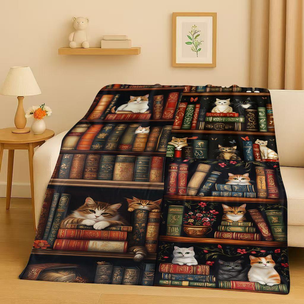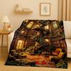 HD Retro Magic Book Library Bookshelf Flannel Blanket,Ultra Soft Warm Plush Throw for Home Bedroom Bed Sofa Cover Office Gift