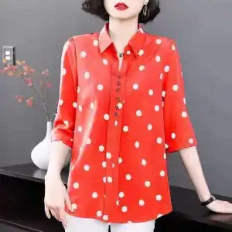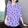 Dames Blouse met Stippen voor Middelbare Leeftijd Revers Halve Mouw Losse Pasvorm Top
