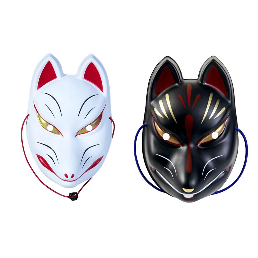 Fox Mask Halloween Tenko Hannya Cosplay Cosplay Moe Halloween Event White and One [vrunyuoi] Set, Japanese-Style Mask, White, Unisex, Mask, Prop,